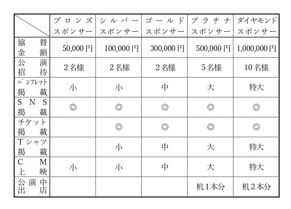 ミュージカル化決定に伴い、次のとおり協賛企業を募集します。公演情報については、追って当協会ホームページ、SNSでお知らせしますので、お楽しみに!