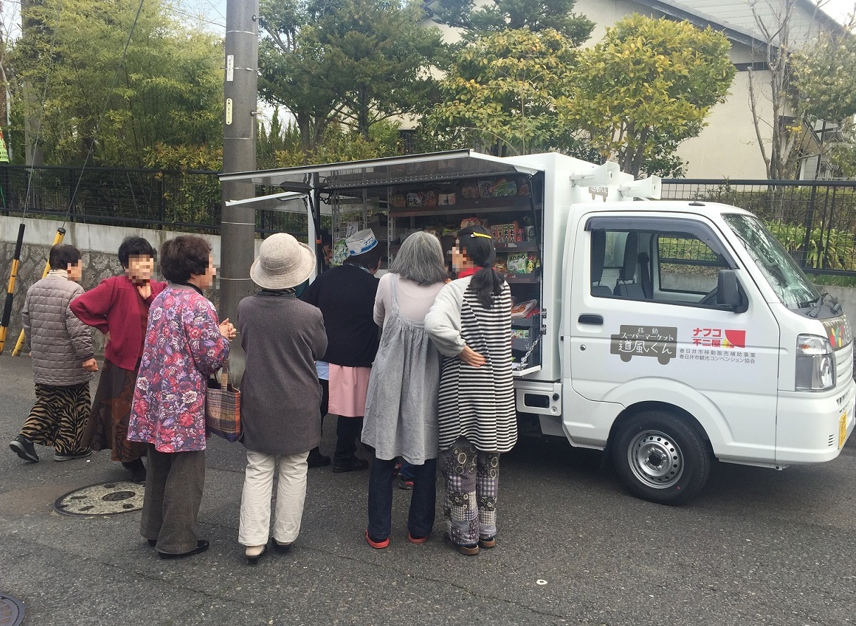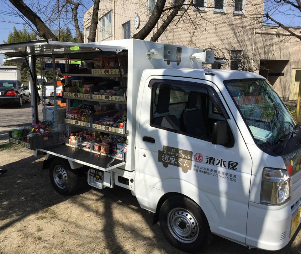 2015年4月から、地域初のコミュニティビジネスとして日常のお買いものの不便を解消することを目的に、250から300種類の商品を積んだ軽トラック「移動スーパーマーケット道風くん」が、市内各地にお伺いしています。